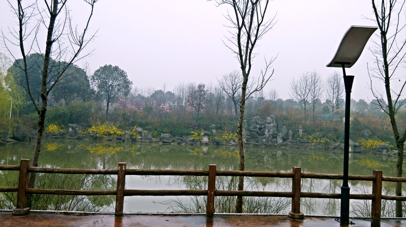 在這樣輕松的氣氛下,不知不覺(jué)車(chē)子已行駛到了容南風(fēng)景生態(tài)園。陰沉的天氣總讓人覺(jué)得眼前的景色有些不真實(shí),仿佛被掩上了一層面紗,透著(zhù)一股朦朧,卻也別有一番韻味。