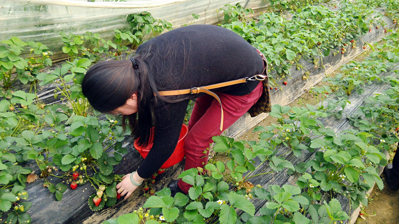 踩著(zhù)腳底的濕泥,穿梭于草莓與草莓之間,大家彎著(zhù)腰,精挑細選,摘下一個(gè)個(gè)又紅又大的草莓。